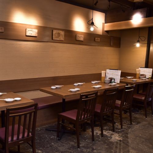 점내는 넓은 공간.2층에는 2종류의 개인실도 있습니다.회식이나 접대, 각종 연회에도 이용해 주십시오.