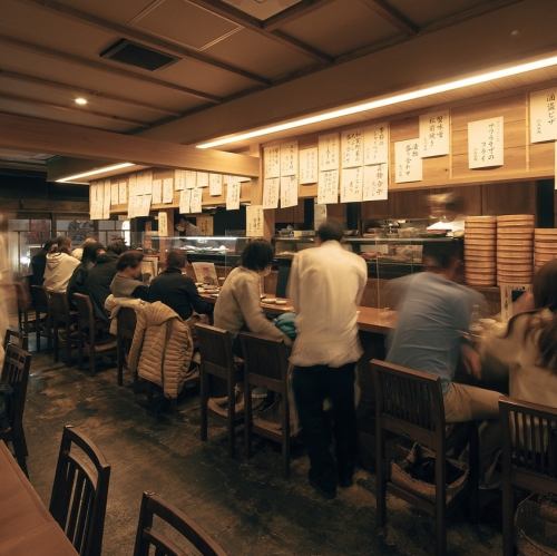 1층은 활기찬 점내에 오픈 키친.카운터석은 어음의 매력을 「눈」에서도 즐길 수 있는 특등석.어음의 장인 기술을 꼭 눈앞에서 봐 주세요.가나자와다운 일본식 공간에서 맛볼 생선회와 목구멍 등 해산물과 계절 요리에 혀고.술창고가 풍부한 이시카와의 토속주도 마음껏 즐겨 주세요.